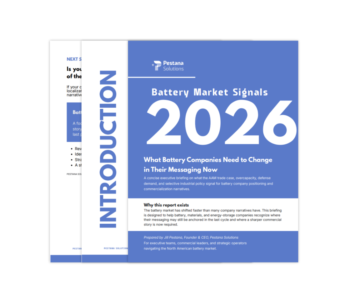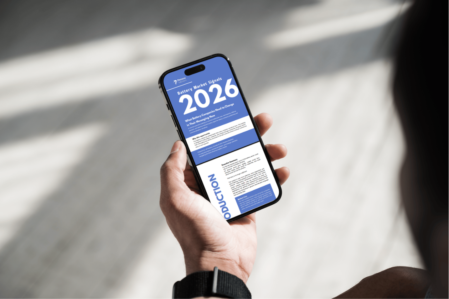 Battery Market Signals 2026 is a free executive briefing designed to help battery companies understand what is changing, what it signals, and how their messaging may need to evolve now.